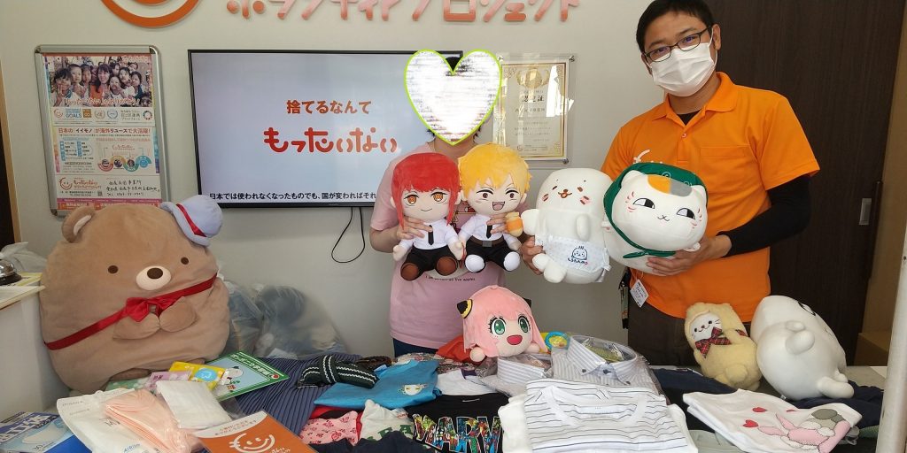 お寄せいただいた品々は、もったいないボランティアプロジェクト様へお渡しし、